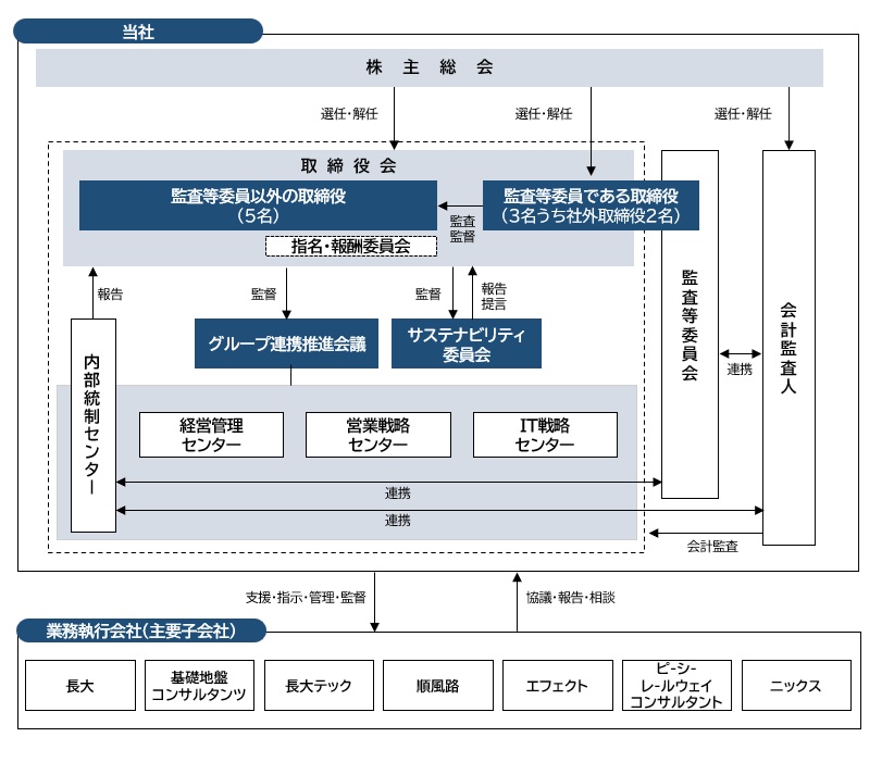 持続的な成長と長期的な企業価値を向上させることを目指して、「経営の透明性と公正性」、「保有する経営資源(人・物・金・情報)の有効活用」、「スピーディーな意思決定」を確保し、実行するための仕組みを当社のコーポレート・ガバナンスと捉え、以下に掲げる「コーポレート・ガバナンスにかかわる方針と取り組み」に基づき、適切に実践します。